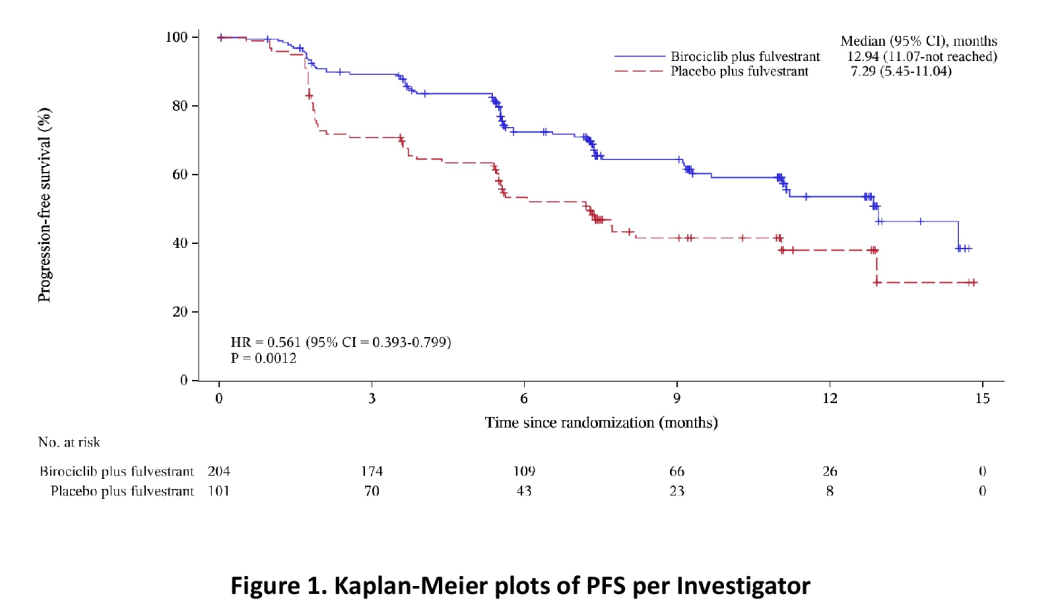 Bireociclib联合氟维司群治疗HR+/HER2-晚期乳腺癌的Ⅲ期临床试验(BRIGHT-2研究中期分析)[1]