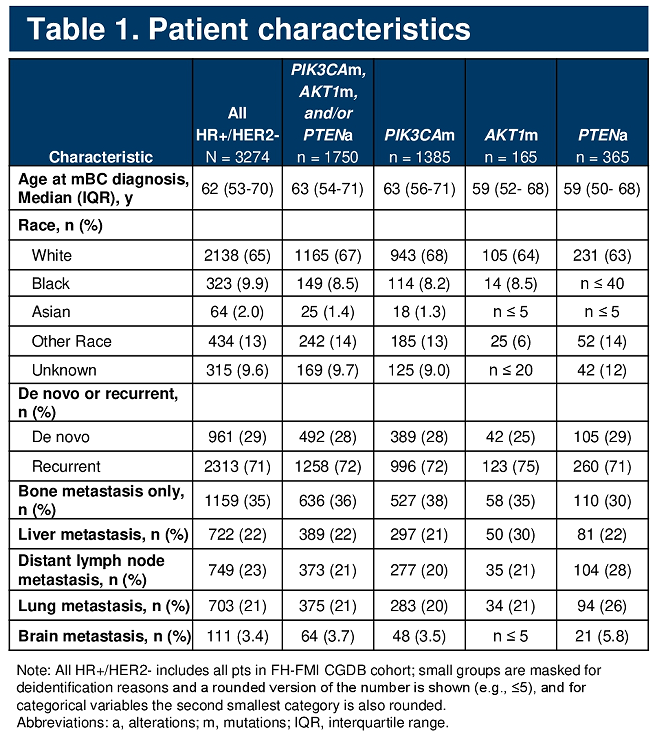 美国HR+/HER2-转移性乳腺癌患者PIK3CA、AKT1、PTEN变异检测模式和变异率丨2024 ASCO