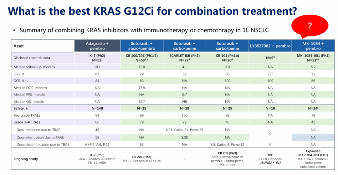 对于KRAS G12C突变晚期非小细胞肺癌(NSCLC),目前KRAS G12C抑制剂的疗效数据使其不能单药用于一线治疗。与KRAS抑制剂联合用药的最佳搭档是什么,请分享您的一些思考。