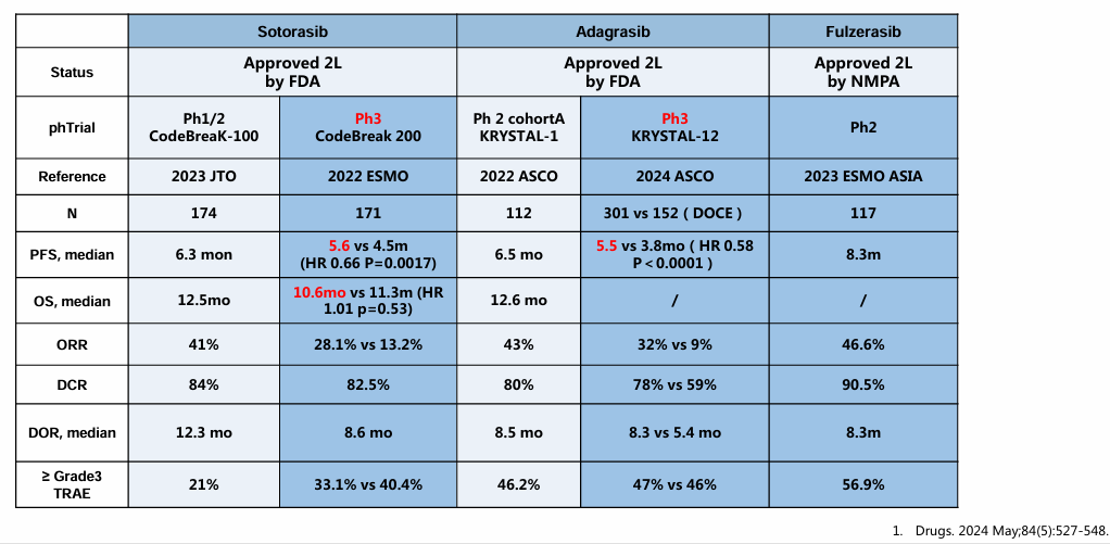 已上市KRAS G12C抑制剂(图源:苏春霞教授WCLC报告PPT)