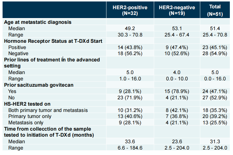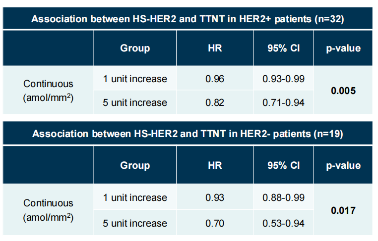 表2.在所有接受T-DXd治疗的转移性乳腺癌患者(n=51)中,HS-HER2与TTNT的关系