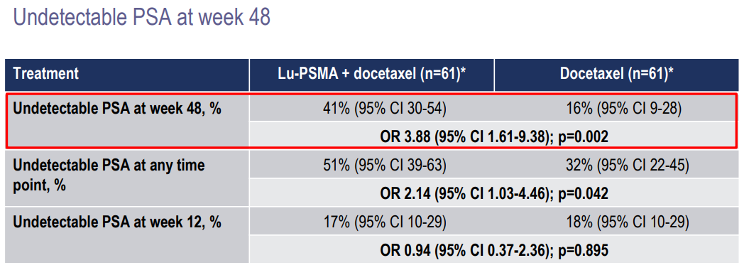 与单独使用多西他赛相比,177Lu-PSMA-617和多西他赛的序贯使用改善了新发、高瘤负荷mHSPC的临床结局,且并未增加毒性。研究结果进一步支持177Lu-PSMA-617治疗mHSPC患者。