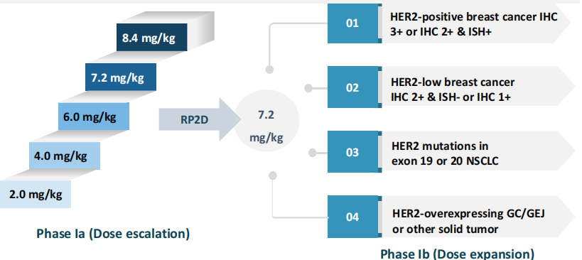 HER2阳性乳腺癌患者中≥3级的治疗相关不良事件(TRAEs)发生率为8.3%。最常见的TRAEs包括胃肠道毒性、骨髓抑制和肝功能异常,大多数为1级或2级。乳腺癌患者中观察到两例1级间质性肺病(ILD),无受试者因不良事件而减少剂量、退出或死亡。