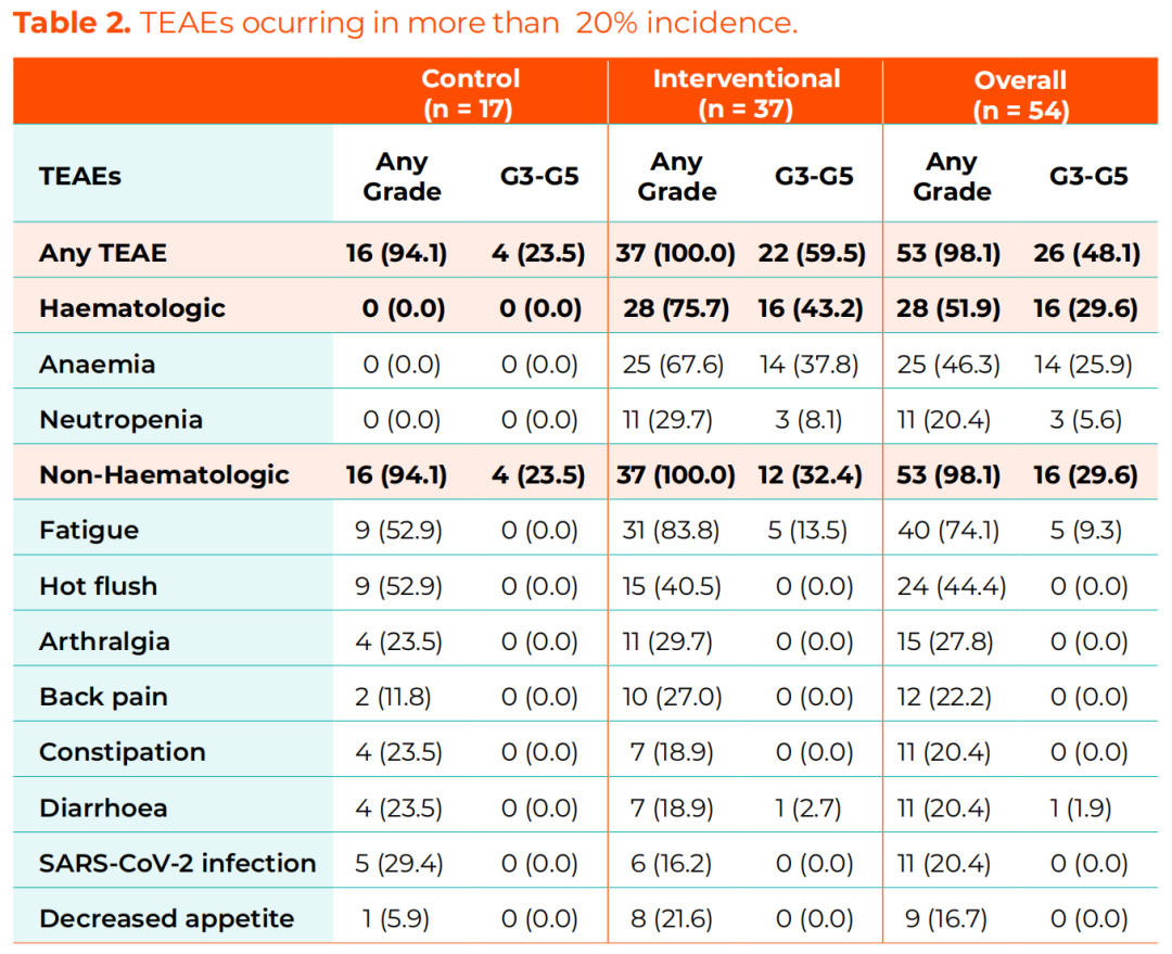 本次ESMO大会带来了更多的恩扎卢胺联合治疗策略探索。随着TALAPRO-2研究的成功,恩扎卢胺+ADT+PARPi的“三联方案”可进一步向前拓展。ZZFIRST(NCT04332744)是一项西班牙研究者发起的2期多中心研究[5],入组了54例高肿瘤负荷的mHNPC(未经内分泌治疗的转移性前列腺癌)患者,先接受2个周期的恩扎卢胺+ADT治疗,随后分别接受恩扎卢胺+ADT+他拉唑帕利或安慰剂治疗。研究结果显示治疗13周期第1天(C13D1),相较于“二联”方案,“三联”方案的PSA完全缓解率(PSA-CR)有显著提升8.3%(73.0%vs 64.7%,P<0.001)rPFS事件风险降低50%(NR vs 31.1个月,HR 0.50);安全性和耐受性良好,常见≥3级AE为疲劳(13.5%)和贫血(37.8%)。