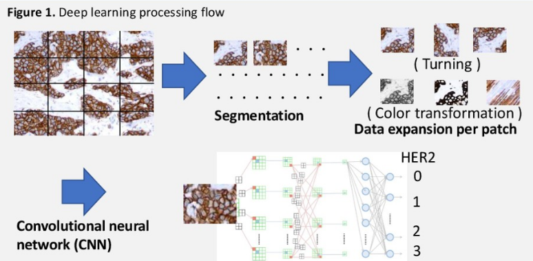 乳腺癌是全球女性中最常见的恶性肿瘤,通过IHC进行亚型评估对制定治疗决策至关重要。近年来,随着多基因检测被用于预测HR+/HER2-乳腺癌化疗的疗效和预后,以及HER2低表达诊断被用于确定T-DXd的适应症后,IHC基础诊断的重要性进一步提升。然而,常规IHC诊断工作量大且复杂,临床实践中亟需减轻工作负担。因此,我们开发了使用人工智能(AI)的自动化诊断系统,用于乳腺癌的雌激素受体(ER)和HER2 IHC诊断,这对于确定乳腺癌的治疗策略至关重要。