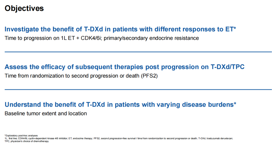 DESTINY-Breast06研究的额外分析:T-DXd作为二线治疗在HR+/HER2低表达/超低表达mBC中的疗效与安全性