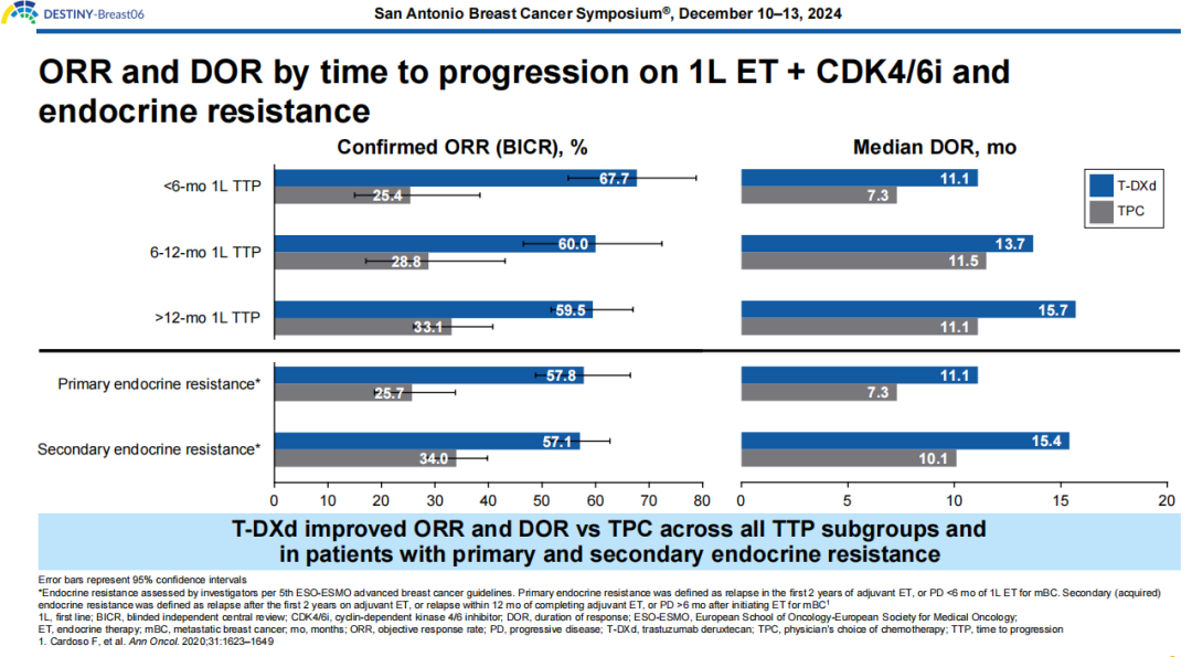Aditya Bardia,et al.Efficacy and safety of trastuzumab deruxtecan(T-DXd)vs physicians choice of chemotherapy(TPC)by pace of disease progression on prior endocrine-based therapy:additional analysis from DESTINY-Breast06.2024 SABCS.Abstract LB1-04.