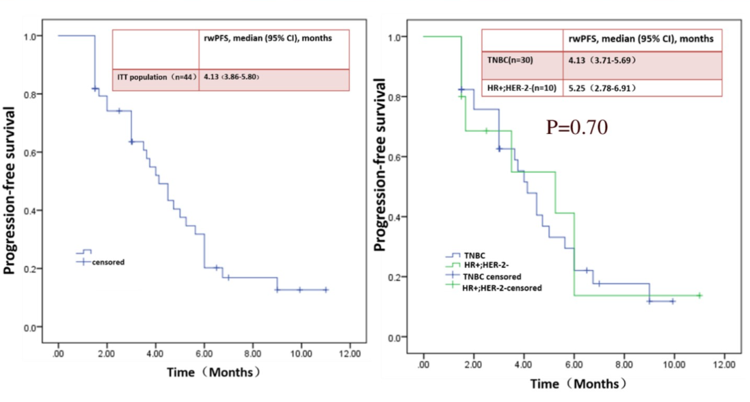 图9.中国RWS SG在全人群(左)及TNBC或HR+/HER2-人群(右)的rPFS
