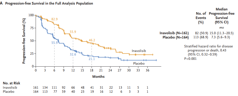 INAVO120研究伊那利塞组和安慰剂组的PFS