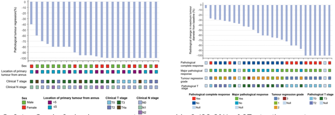 本研究共纳入27例患者,中位随访9.7个月显示,88.9%的患者接受了R0切除术,pCR率为37%,MPR率为55.6%,cCR率为22.2%(图7)。