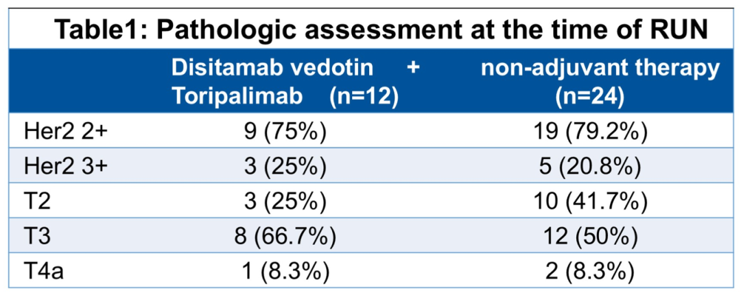 因此,我们团队考虑将这一组合用于高危且HER2高表达人群的术后辅助治疗。在与患者充分沟通并取得共识后,我们采用8个周期维迪西妥单抗联合26个周期免疫治疗的方案。从2022年至2024年,我们共收集了12名接受该方案治疗的患者数据。同时,24位高危高表达患者因各种原因未接受任何辅助治疗。通过一年的随访观察,我们发现使用靶免联合治疗组的12个月DFS高达91%,而单纯随访组仅62.5%。这一结果初步表明,维迪西妥单抗联合特瑞普利单抗在UTUC术后辅助治疗中前景广阔。关于治疗相关不良反应,总体而言,3级不良反应的发生率相对较低,且相关毒性均在预期范围内,未出现新的不良反应。