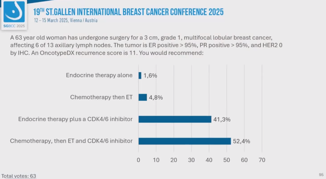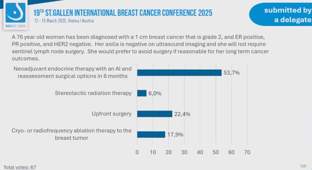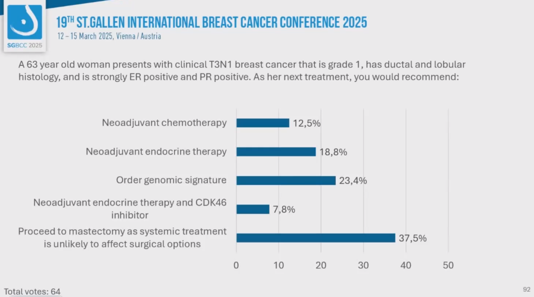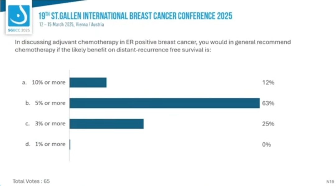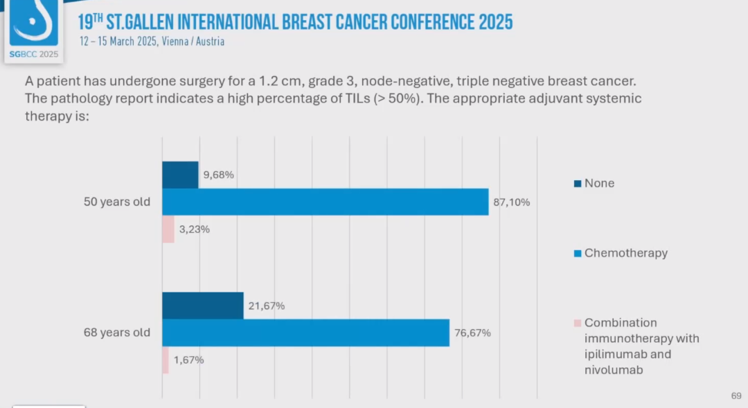 编者按:第19届St.Gallen国际乳腺癌大会(SGBCC 2025)于当地时间2025年3月12~15日在音乐之都维也纳举行。大会的最后一天,专家投票压轴登场。《肿瘤瞭望》整理了包括三阴性乳腺癌、HER2阳性乳腺癌、激素受体阳性乳腺癌在内的系统治疗专家投票,现成文如下,与大家一起感受早期乳腺癌治疗决策的圣加伦氛围。