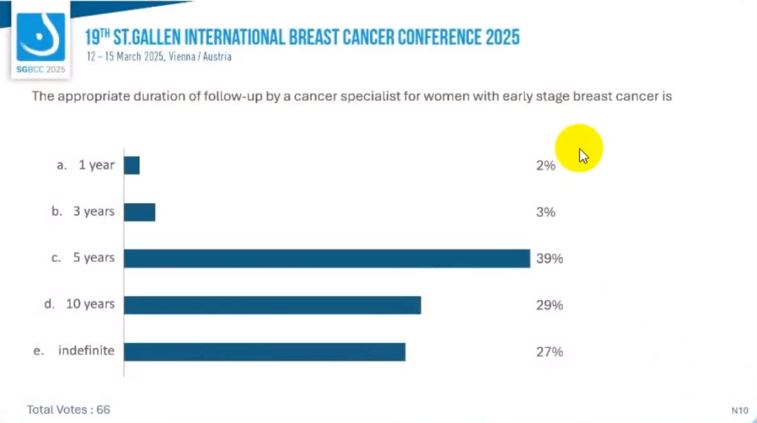(2)肿瘤专科医生随访早期乳腺癌患者的合理时长