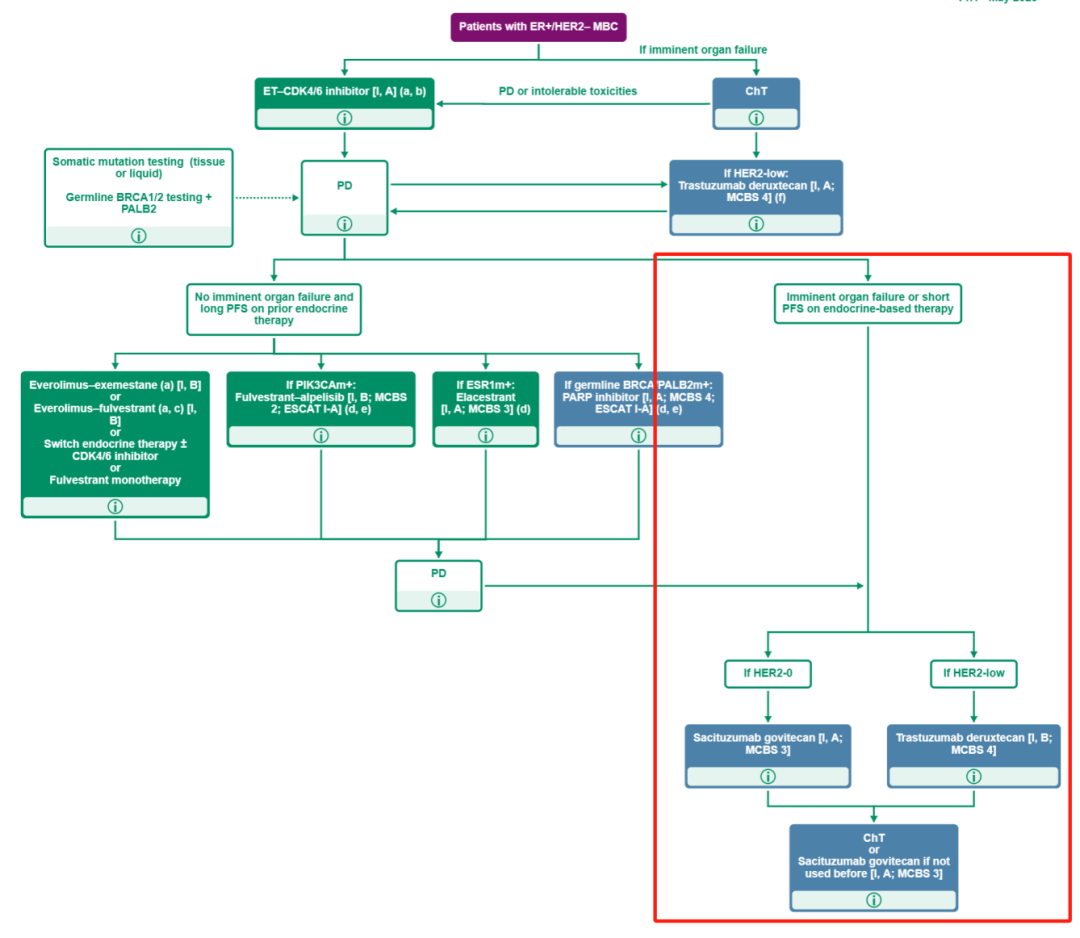△“ESMO MBC在线指南”晚期HR+/HER2-乳腺癌治疗推荐