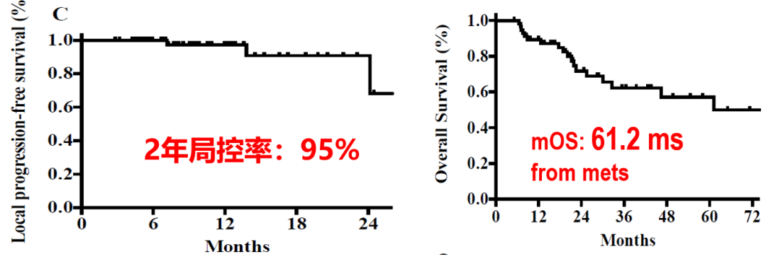 △放射治疗(SBRT)联合全身治疗晚期RCC患者的2年局部控制率和中位生存期