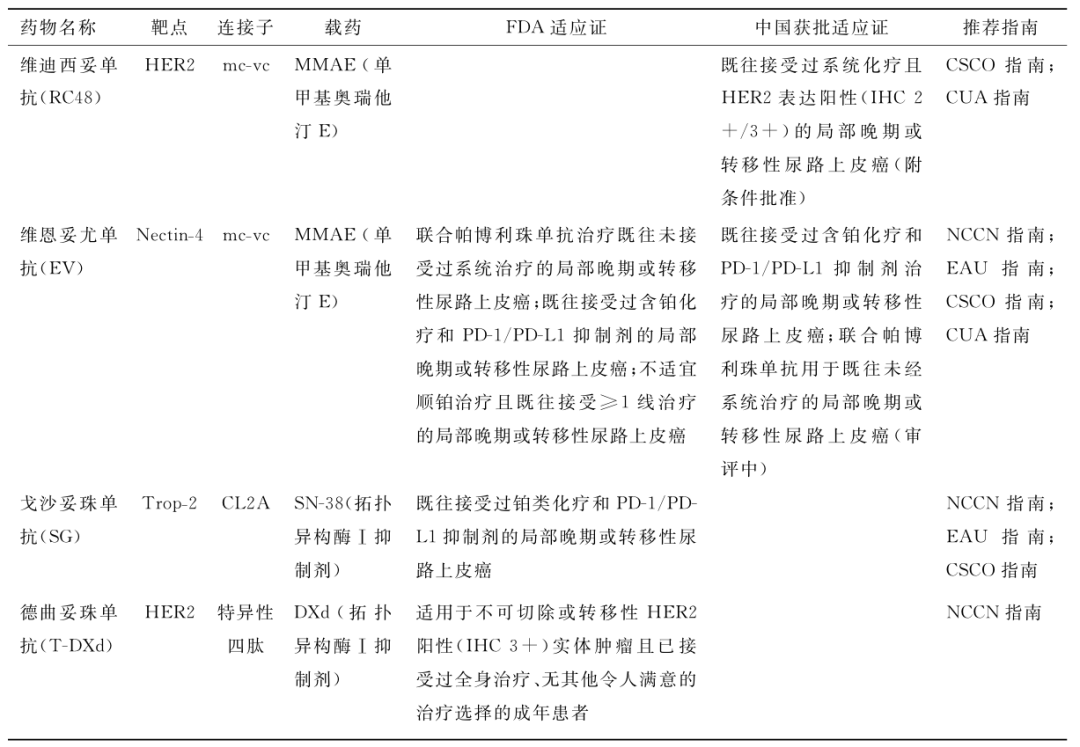 表1晚期尿路上皮癌ADC药物指南推荐