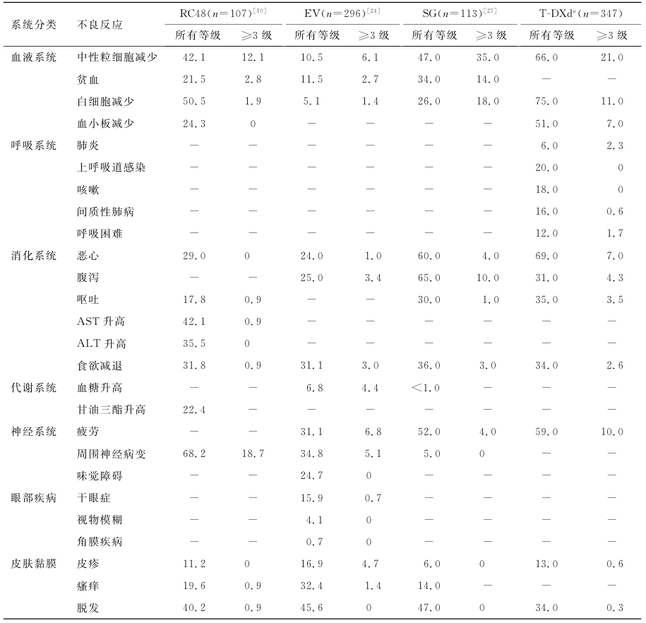 表3 4种ADC药物的不良反应种类及发生率
