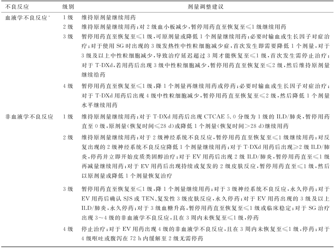 表5 ADC药物用药推荐减量方案