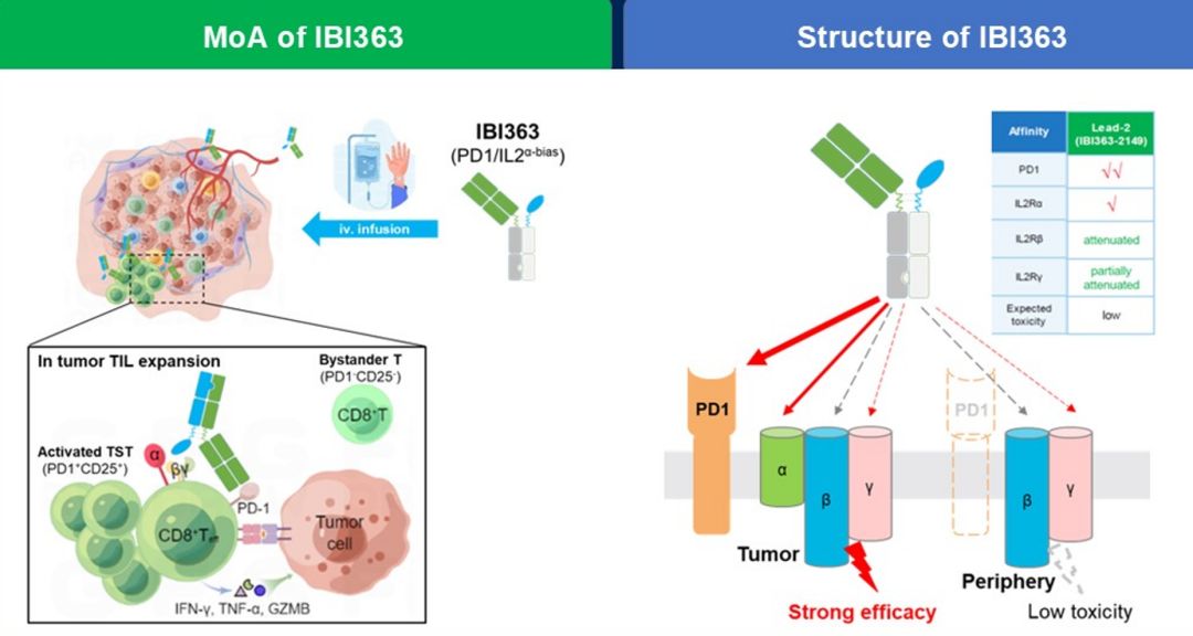 郭军教授:此次ASCO大会的口头报告中,我们介绍了新型药物IBI363用于治疗免疫治疗耐药的肢端和黏膜黑色素瘤的1/2期研究数据。IBI363是一种PD-1/IL-2α-bias双特异性抗体融合蛋白,可阻断PD-1并激活IL-2α-bias,以恢复衰竭的肿瘤特异性T细胞。
