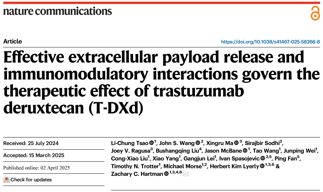 [1].Tsao LC,et al.Effective Extracellular Payload Release and Immunomodulatory Interactions Govern the Therapeutic Effect of Trastuzumab Deruxtecan.Nat Commun.2025;16:3167.