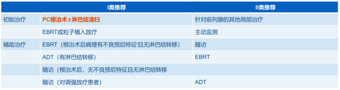 • 中危:只针对高选择者(GS 4占比<10%),患者能接受疾病转移潜在风险有所上升,预期寿命小于10年。