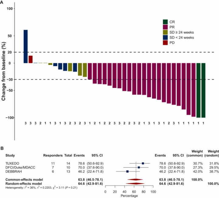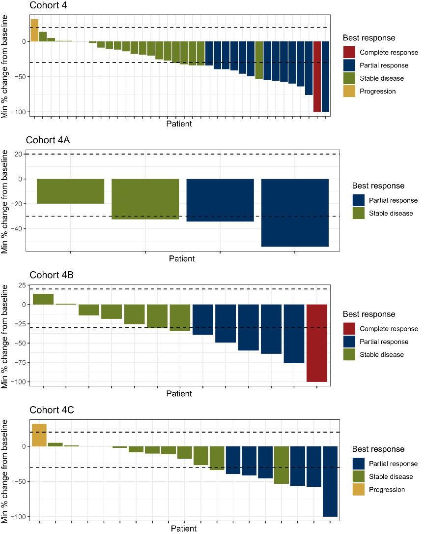 图9.TBCRC 022研究队列4的最佳中枢神经系统疗效的瀑布图