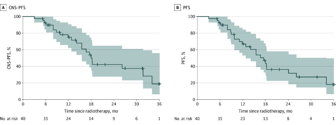 图7.吡咯替尼联合放疗试验CNS-PFS和PFS的Kaplan-Meier曲线