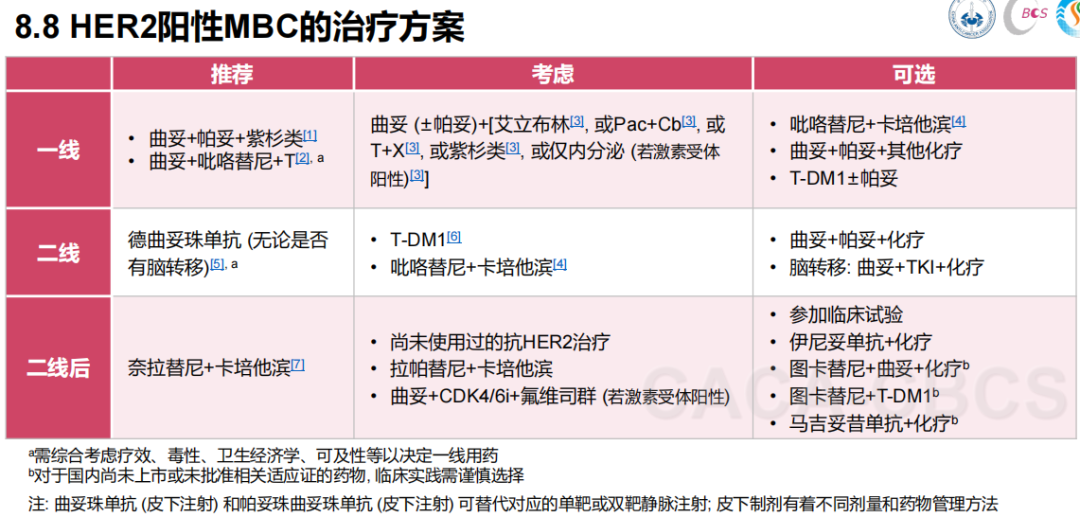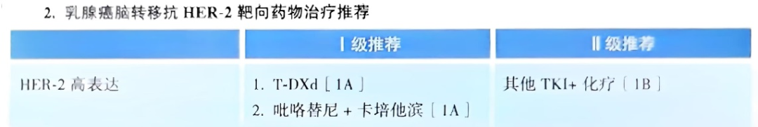 图10.《CSCO BC指南》(上)、《CACA指南精要版》(下)对HER2阳性乳腺癌脑转移的治疗意见
