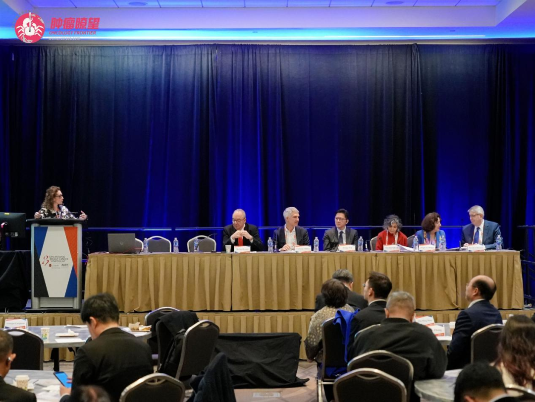 本专场的核心环节是一场高规格的跨指南圆桌讨论。在SABCS主席Virginia Kaklamani教授的主持下,NCCN指南代表Hope Rugo教授、St.Gallen共识专家Michael Gnant教授、ASCO指南专家Harold Burstein教授、AGO指南专家Volkmar Müller教授、ESMO专家Giuseppe Curigliano教授、中国CACA-CBCS指南代表吴炅教授以及美国专家Seema Khan教授齐聚一堂,围绕三个极具代表性的真实病例,展开了一场深入而富有建设性的观点交流。