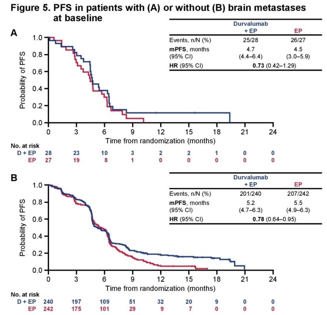 CASPIAN研究基线有脑转移和无脑转移患者的PFS