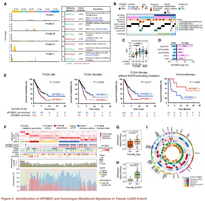 研究人员开展的突变特征分析揭示了几种与年龄、性别相关的突变机制,包括APOBEC(载脂蛋白B mRNA编辑酶,催化多肽样)突变特征在年轻女性中的高患病率,以及在老年女性中环境致癌物样突变特征的过度表达。