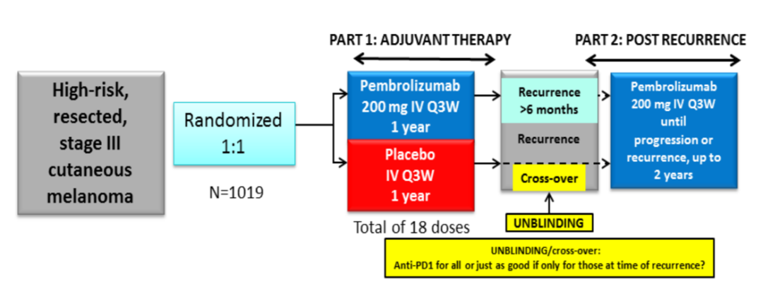 [1]Eggermont AMM, Blank CU, Mandala M, et al. Adjuvant Pembrolizumab versus Placebo in Resected Stage III Melanoma. N Engl J Med. 2018;378(19):1789-1801. doi:10.1056/NEJMoa1802357