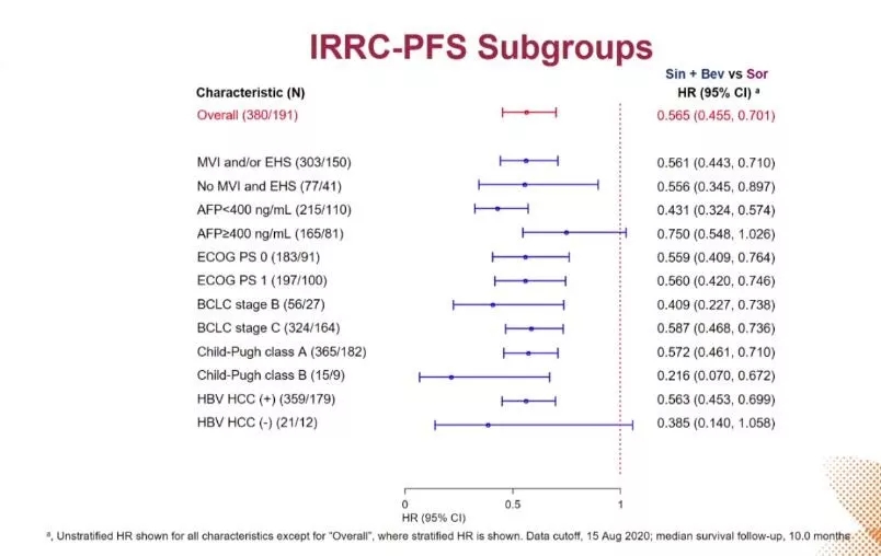 作为晚期肝癌患者的一线治疗,信迪利单抗+贝伐珠单抗在临床疗效上有显著的改善:与索拉非尼相比,信迪利单抗+贝伐珠单抗在OS和PFS方面的获益大体一致;在ORR上的优势具有统计学意义,联合用药的安全性在可接受范围。信迪利单抗+贝伐珠单抗可作为不可切除/转移性HCC患者的一线治疗方案。