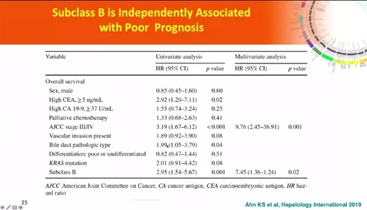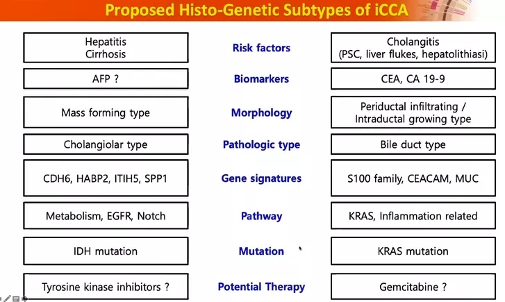 Lewis Roberts教授报告了胆管癌分子分型的研究进展,组织遗传学分型兼顾了胆管癌的组织病理学特征和分子特征,具有更好的代表性,与患者的预后独立相关。