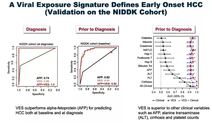 通过对1072例患者的宿主病毒感染图谱进行抗原表位解析研究,表明病毒暴露史可预测高危人群的HCC发生风险,在临床诊断前,应用病毒暴露特征(VES)可以预测HCC的发生,优于AFP的预测性能,有必要进行大样本的前瞻性研究,进一步评估VES用于监测早期HCC的价值。