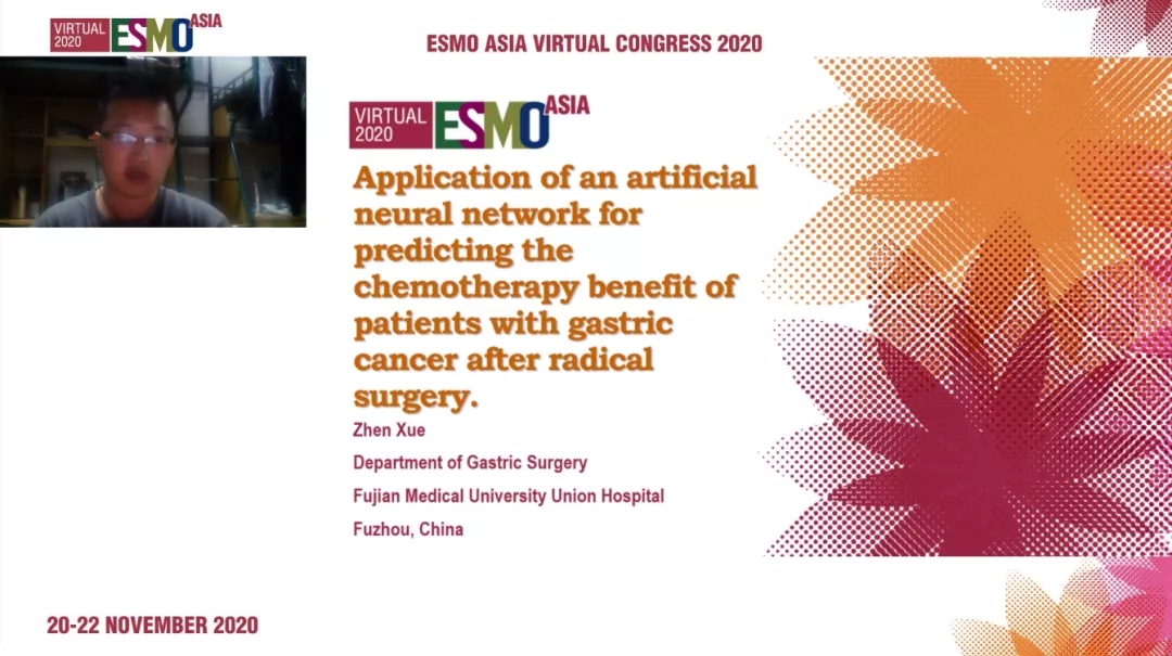 3. Z. Xue, D. Wu, L.-L. Shen, et al. Application of an artificial neural network for predicting the chemotherapy benefit of patients with gastric cancer after radical surgery. ESMO Asia Virtual Congress 2020 (20-22 November 2020). Abstract 119MO.