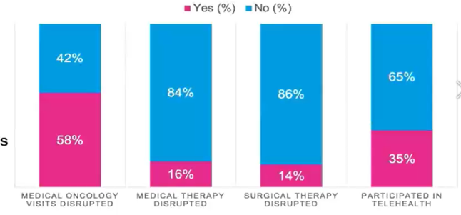 COVID-19已在全球大流行,对正在接受癌症治疗的患者造成了严重影响。在肿瘤医学领域,实践模式发生了巨大变化,以迅速适应资源的转换,同时维持肿瘤患者的安全。在我们位于纽约市的大型癌症治疗中心,手术和药物治疗的交付发生了重大变化,向新辅助治疗、口服化疗、延长卵巢抑制以及暂停或延迟许多临床试验的转变。本研究旨在通过调查结果确定COVID-19大流行对乳腺癌/妇科癌症患者感知的肿瘤学相关护理的影响,以及对生活质量(QOL)和总体健康(OH)的影响。