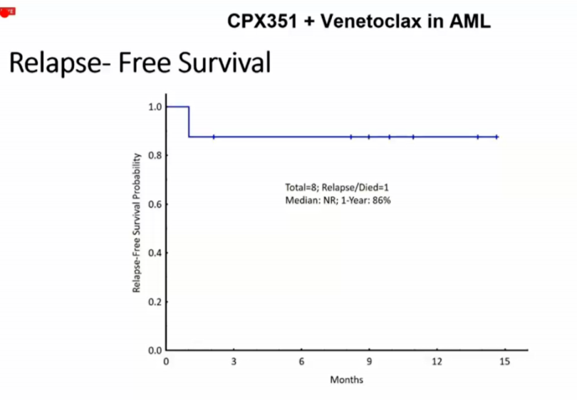 总的来说长期应用(20天维奈托克)有较强的骨髓抑制。但短期应用方案(5-8天的维奈托克),而特别是针对高危人群的ORR、1年的RFS率都有明显获益,且患者大多后续可以接受造血干细胞移植治疗。