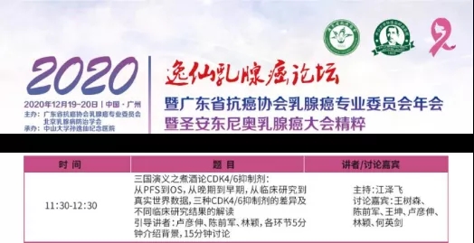 (以上学术观点整理自《2020逸仙乳腺癌论坛》江泽飞教授、刘强教授、王树森教授、陈前军教授、王坤教授、卢彦伸教授、林颖教授和何英剑教授于“三国演义之煮酒论CDK4/6抑制剂”讨论环节观点)