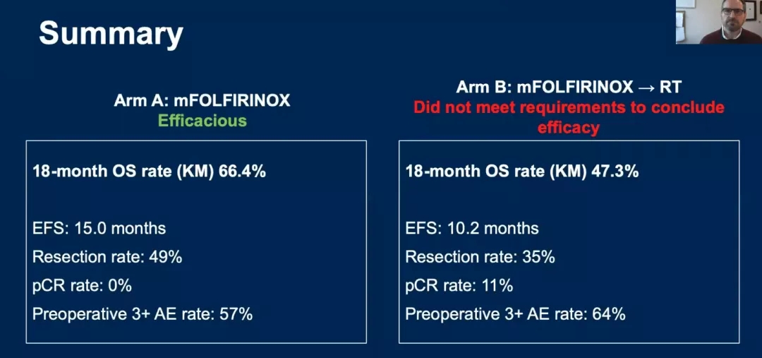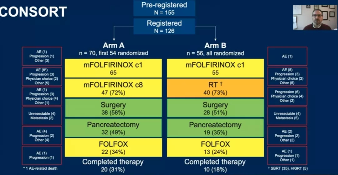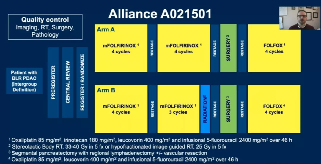 Matthew H. Katz, et al.Alliance A021501: Preoperative mFOLFIRINOX or mFOLFIRINOX plus hypofractionated radiation therapy (RT) for borderline resectable (BR) adenocarcinoma of the pancreas.ASCO GI, Jan 15~17,2021.ABSTRACT 377.