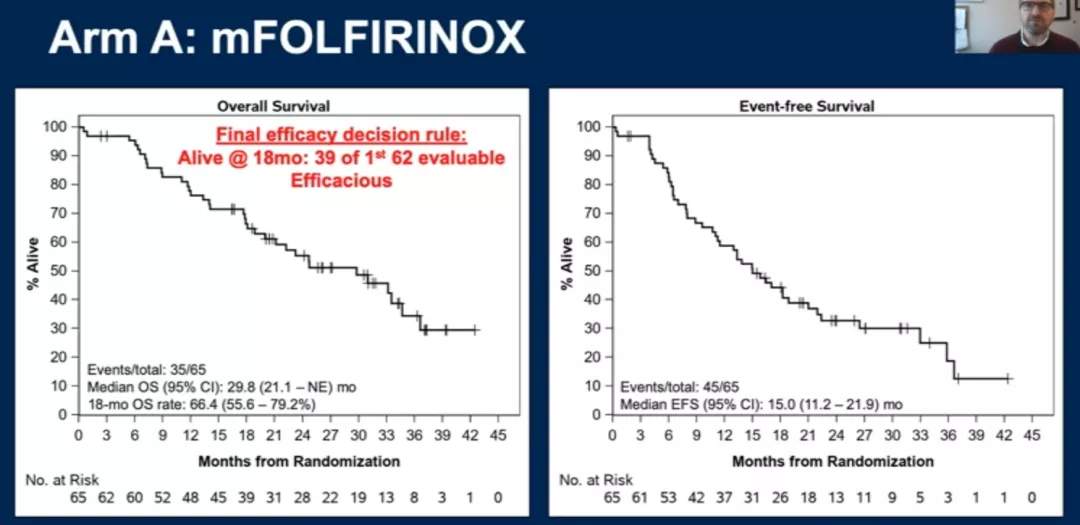 图3. 组A(mFOLFIRINOX组)的OS及无事件生存数据