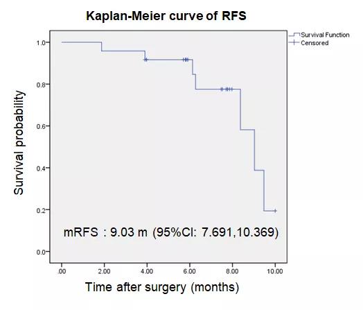 本研究共入组了24例IIb/IIIa期(病灶数量≥3或血管侵犯)的HCC患者,所有患者需满足Child-Pugh评分≤7、ECOG评分0~1、无肝外扩散,在R0根治性切除术后口服仑伐替尼(体重大于60kg口服12mg qd或体重小于60kg口服8mg),初步分析结果提示中位无复发生存期(RFS)为9.03个月。与既往单纯手术的IIb/IIIa期患者相比有了进一步的改善,初步提示了仑伐替尼在高危复发患者中预防或减少术后复发的可能性。