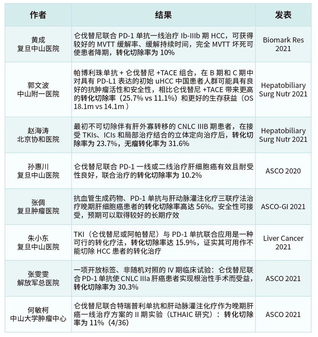 Δ已报道含仑伐替尼的肝癌转化治疗相关研究