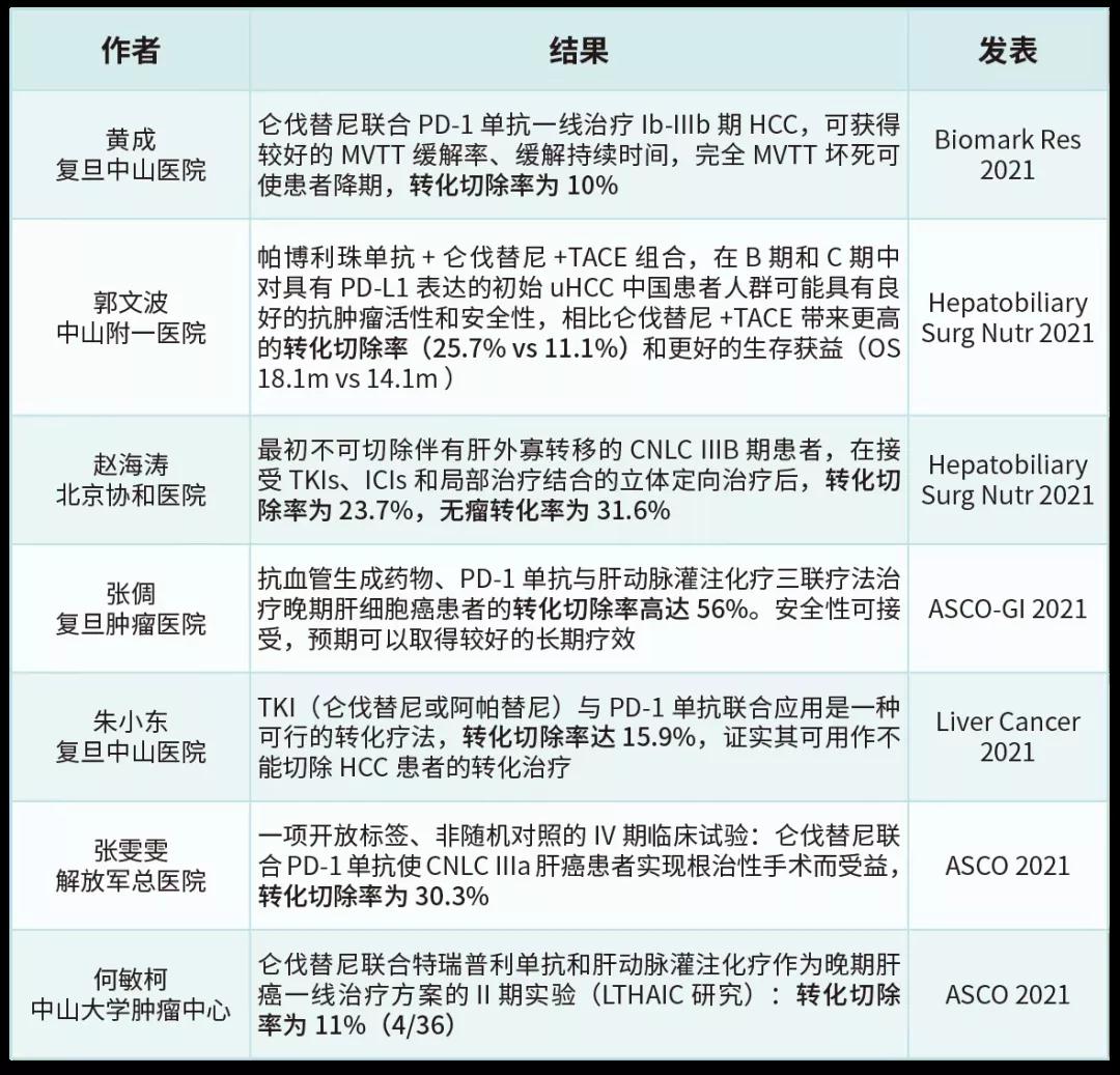 已报道含仑伐替尼的肝癌转化治疗相关研究