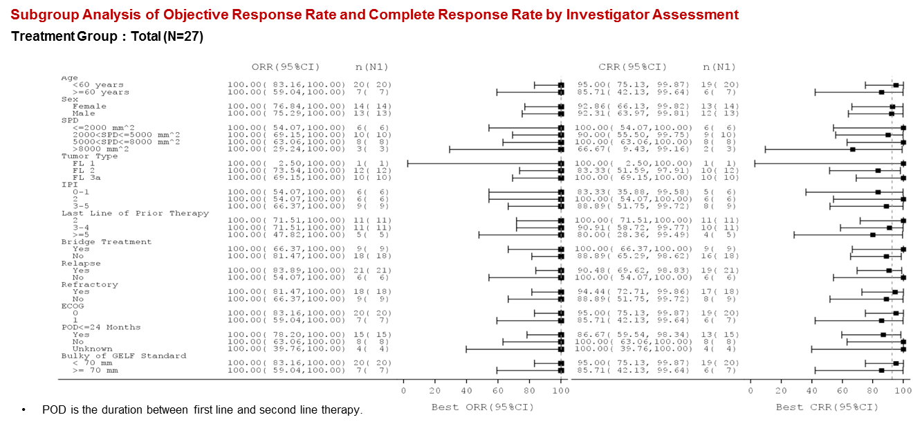 图1、Relma-cel治疗r/r FL患者的亚组分析ORR、CRR