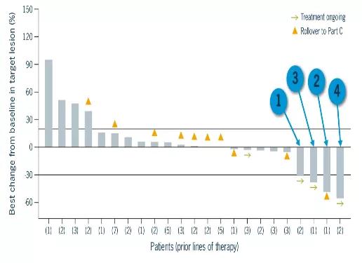 研究共入组27例患者接受Nemvaleukin单药治疗(B部分),4/21例(1确认,1未确认,2待确认)获得PR,11例获得SD,4例患者治疗大于1年。Part B中PD的10例患者进入C部分,可评价的8例患者中获得1例PR,治疗时间超过1年,其余5例为SD。最常见的不良反应有发热(59.3%)、寒战(55.6%)、恶心(29.6%)和贫血(29.6%)。≥3级不良反应有粒细胞减少(18.5%)、贫血、转氨酶升高、血压升高和胆红素升高(均为7.4%)。1例患者因支气管痉挛停止治疗的,无治疗相关AEs导致的死亡。