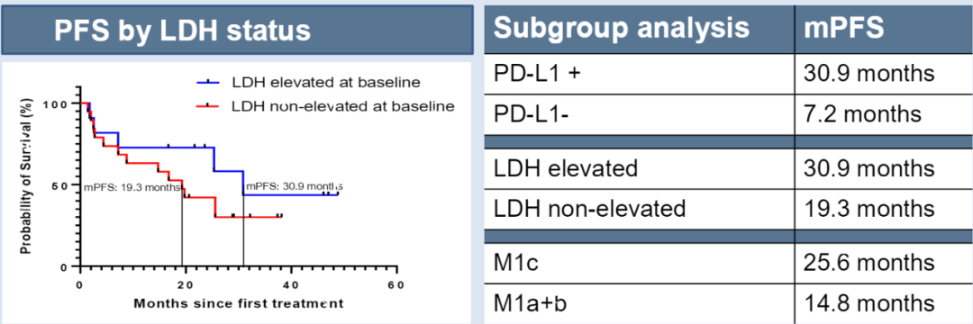 该研究的早期结果非常令人鼓舞,ORR为80%,其中46.7%为CR。中位随访32个月后,mPFS为25.3个月,是接受标准治疗的患者预期的两倍,值得进一步深入研究。
