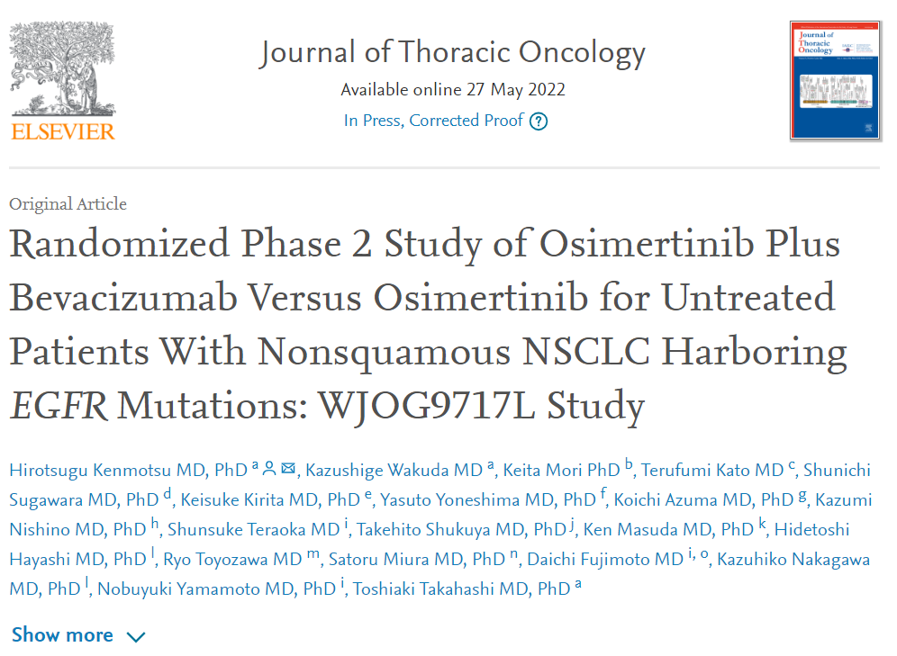 文献精读丨奥希替尼联合贝伐珠单抗一线治疗携带EGFR敏感突变的晚期NSCLC患者:一项II期随机对照研究