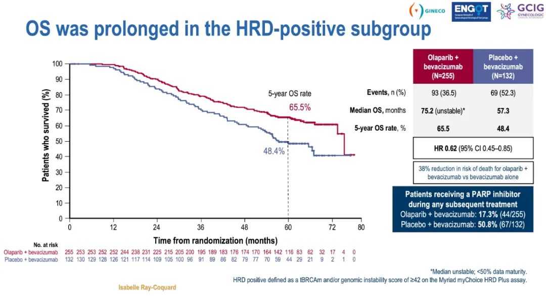 PAOLA-1/ENGOT-ov25试验中HRD阳性患者的OS延长(LBA29)