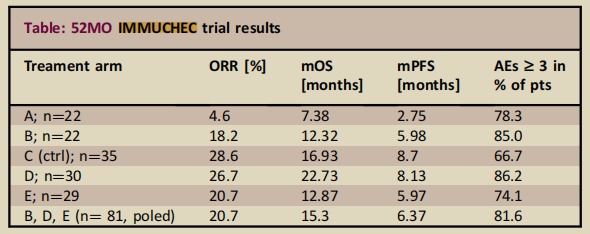IMMUCHEC研究是一项前瞻性、随机、多中心Ⅱ期概念验证性研究,评估了Tremelimumab(两种给药方案)联合化疗+度伐利尤单抗的疗效。